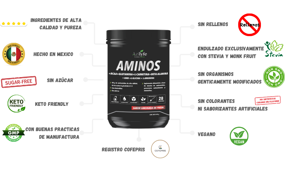 Aminoacidos esenciales + BCAA + Glutamina + Carnitina + Beta Alanina + HBM + Glicina + Arginina